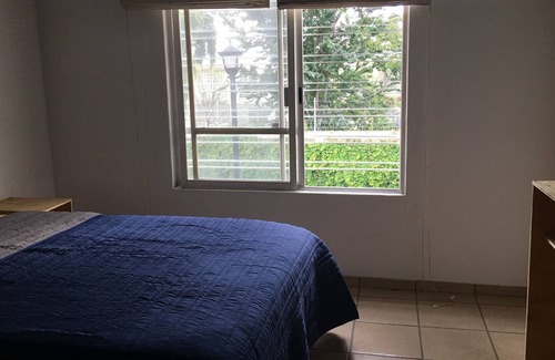 Ubicada a 20 minutos del aeropuerto internacional de Guadalajara, la casa se encuentra en un condominio con seguridad las 24 horas. Cuenta con estacionamiento para dos autos y está disponible para estadías cortas y largas.
