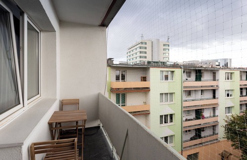 Śląska Pleasant Green Studio features a room with a comfortable double bed and a sofa bed, along with a balcony where guests can relax and enjoy their morning coffee or an evening glass of wine. The apartment offers a fully equipped shared kitchen and two bathrooms shared with two other apartments, providing comfort and easy access to essential amenities. This shared space encourages social interactions and creates a welcoming atmosphere during your stay. Guests have access to practical amenities, including cable TV, a washing machine, iron, hairdryer, fridge with freezer, dishwasher, induction cooktop, microwave, coffee machine, kettle, oven, and kitchen utensils.