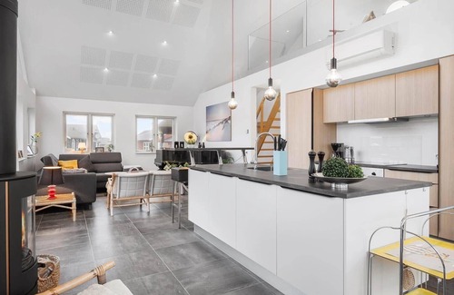 La cocina está equipada con horno, placa de cocina y frigorífico, además de cafetera y tetera y microondas. Y como podrás aprovechar la lavadora y la secadora, no te hará falta llevar mucho equipaje.