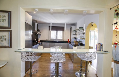 Villa en alquiler de estilo mediterráneo, muy bien decorada. A tan solo 300m de la playa de canto rodado y 700m de la playa de arena. Tiene cerca restaurantes, y un pequeño supermercado. Denia se encuentra a unos 8 Km. y Els Poblets a unos 2 km.