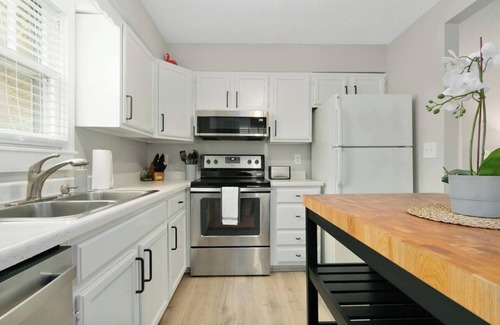 Al instalarte en este alojamiento de 1 dormitorio y 1 baño, encontrarás una zona para barbacoas, aire acondicionado y oficinas. La cocina está equipada con horno, placa de cocina y frigorífico, además de cafetera y tetera, microondas y utensilios de cocina. Y no tendrás que llevarte ropa de más, porque podrás aprovechar la lavadora y la secadora.