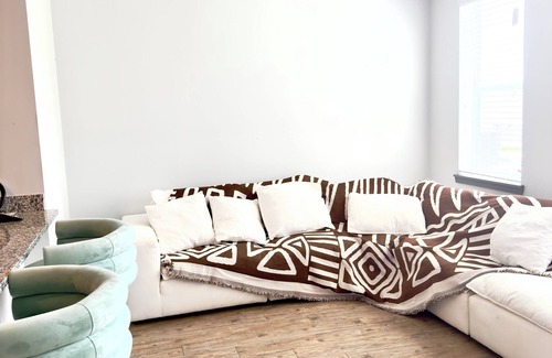 Este alojamiento de 1 dormitorio y 1 baño cuenta con una sala de estar y aire acondicionado. Pon a prueba tus habilidades jugando al billar, o disfruta del wifi, de la televisión y de los videojuegos. El cuarto de baño incluye un secador de pelo, toallas y papel higiénico. La cocina está equipada con horno, frigorífico y lavavajillas, además de microondas, utensilios de cocina y licuadora. Y como podrás aprovechar la lavadora y la secadora, no te hará falta llevar mucho equipaje. Otras comodidades incluyen ropa de cama, una tabla de planchar y calefacción.