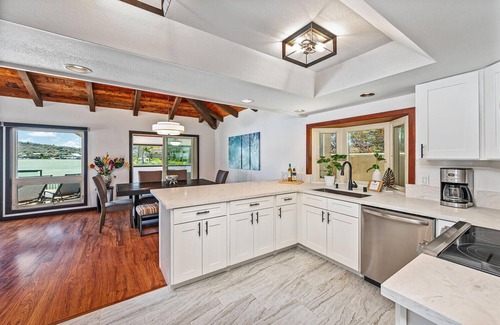 Bienvenido a Nani Wai, una vez que entras en la puerta de esta hermosa casa frente al puerto deportivo, sentir����s como si literalmente hubieras entrado en tu propio complejo privado: ¡una isla paradisíaca solo para ti y tus seres queridos! Con 5 dormitorios, 4 baños, una litera incorporada, este plan de piso de concepto abierto con techos altos y habitaciones grandes tiene un montón de lugares para que todos fluyan. ¡Los pequeños pueden disfrutar de la "Sala de Harry Potter escondida debajo de las escaleras" o del rincón de juegos en el piso de arriba! ¡Una piscina con burbujas y un jacuzzi se sientan frente al agua de la bahía trasera a la sombra de la majestuosidad del Cráter Koko Head! Pesca en tu propio muelle o lanza los kayaks a pocos pasos de la casa y disfruta de las tranquilas aguas del puerto deportivo.
