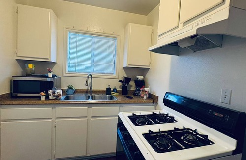 Este apartamento de 1 dormitorio y 1 baño está ubicado en San Pedro, una ubicación ideal para explorar los alrededores. A los amantes de la naturaleza y el aire libre les encantará estar a 11min en coche de Playa de Cabrillo y a 5min de Parque de Point Fermin. Puedes conducir 5min hasta Terminal de cruceros World Cruise Center o 3min hasta Battleship USS Iowa Museum.