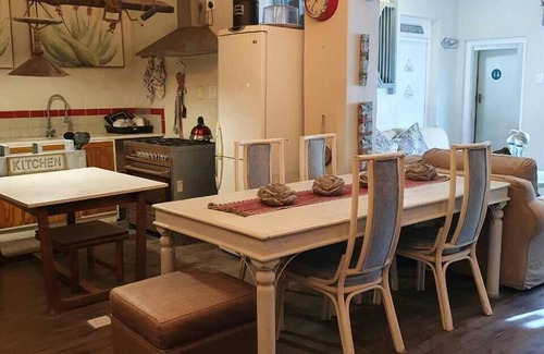 Tenemos una cama de 14 con 1 cama doble y 9 literas en una casa de huéspedes, cocina comunitaria y sala de estar. Los huéspedes pueden utilizar el área de braai. Esta habitación es adecuada para una gran familia que quiere estar en la misma habitación. Nuestra casa de huéspedes se encuentra a pocos pasos de la playa, tiendas, restaurantes, cafeterías, bares y todas las comodidades. Esta es una base ideal para explorar False Bay, las rutas de ballenas y vinos y las reservas naturales. Estamos a una caminata rápida de la larga y famosa playa, con su tramo de rascacielos y restaurantes vibrantes. Venga a relajarse en un tranquilo jardín con características de agua (ponga su zen), un braai para que no tenga hambre, y DSTV y wi-fi gratis para que no pierda el contacto con el mundo irreal. También hay un gran lugar para practicar surf cerca