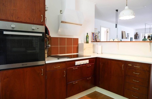 La cocina está equipada con horno, placa de cocina y frigorífico, además de cafetera y tetera y microondas. Y hay acceso a una lavandería, de modo que necesitarás poco equipaje.
