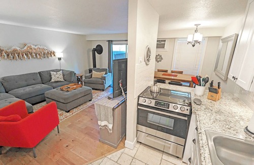 Este alojamiento de 2 dormitorios y 1 baño cuenta con una sala de estar, chimenea y aire acondicionado. El cuarto de baño incluye un secador de pelo y toallas. La cocina está equipada con horno, placa de cocina y frigorífico, además de cafetera y tetera, microondas y utensilios de cocina. Y no tendrás que llevarte ropa de más, porque podrás aprovechar la lavadora y la secadora.