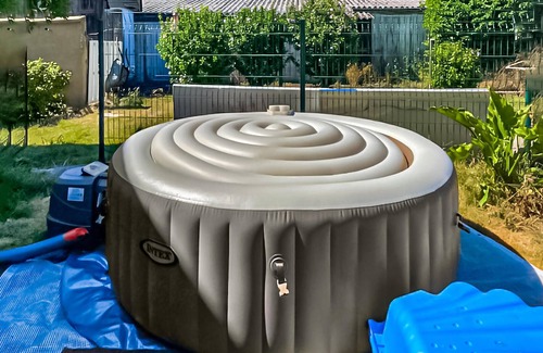 You have access to a plot of land shared with the owner, as well as a private garden, protected from view. Here you will find a quiet corner for cozy outdoor reading or relaxing in the outdoor spa.