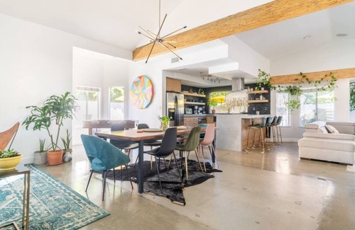 Casa tropical ecléctica a 1,6 km de Coachella / Stagecoach / Polo Grounds, restaurantes / bares y tiendas con bicicletas convenientemente proporcionadas bajo petición y a 8 km del Indian Wells Tennis Garden. Esta casa se completa con una mesa de pong de la cerveza, una piscina de agua salada / spa, ($ 45 por 8 horas de calefacción), una ducha al aire libre y un nuevo bar / cocina al aire libre. Soy un asistente de endodoncia de 28 años que trabaja horas muy largas con pacientes de emergencia y casi no está en casa cuando estoy. Principalmente, estoy en el segundo nivel, que es la suite principal con mi propia entrada privada, dejando el primer nivel, al aire libre completamente privado para Usted y deseando tener más tiempo para disfrutarlo, ¡así que venga, haga los honores, una escapada de paraíso de entretenimiento o relajación está a la espera de su disfrute!