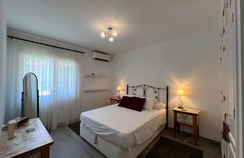 On the main floor you have a lovely entrance hall, three bedrooms one of which is ensuite and the other two share a bathroom. Max 6 person can use the villa. We have an extra foldable bed in the case 7 guest book the villa. Pool heating is on request 300 euro per week extra. An Alarm System is installed and sa ecurity gate is at the entrance of the urbanisation.