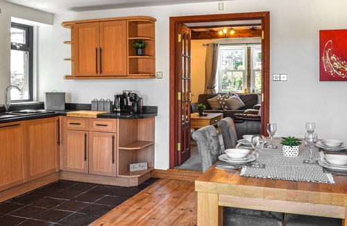 Bathroom: With corner spa bath, shower attachment and toilet.. Gas central heating, gas, electricity, bed linen, towels and Wi-Fi included. Travel cot and highchair available on request. Rear garden with sitting-out area and garden furniture. Private parking for 3 cars. No smoking. . Four Gables is a charming pet-friendly holiday cottage nestled in the picturesque village of Scholes, just over a mile from the centre of bustling Holmfirth. With its cosy ambiance and countryside surroundings, it makes the perfect getaway in this beautiful part of West Yorkshire. Downstairs you’ll find a spacious kitchen/dining area with French doors opening out onto the patio, perfect for your morning coffee. There’s also a separate living room for cosy film nights, and a downstairs toilet. Upstairs are three good sized bedrooms, one benefitting from shower facilities, plus a separate bathroom with corner spa bath for soaking tired legs after a long day exploring.