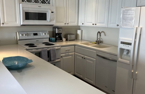 El dormitorio principal tiene una cama king size, televisión con cable y dvd / vcr, hermosos muebles empotrados y baño, y una gran puerta corrediza de vidrio al porche y vistas al océano y la playa. El segundo y tercer dormitorio tienen una cama matrimonial y 2 XL individuales, y están cerca del segundo baño. Todos los colchones son de primera línea y están hechos con sábanas, almohadas y ropa de cama de alta calidad. El salón también tiene una gran puerta corredera de cristal al porche. Contamos con un amplio televisor de pantalla plana de cuero y 43 "Samsung con pantalla plana con cable y DVD. La cocina tiene muchas ollas / sartenes, utensilios y platos. Podrá cocinar y preparar alimentos como si estuviera en su propia cocina. También tenemos una lavadora y secadora de tamaño completo para que las use.