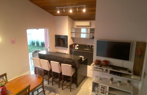 Hermosa casa, cómoda, moderna, bien ventilada, con aire acondicionado en la sala de estar y en todas las habitaciones, cuenta con 3 habitaciones dobles, 1 suite con cama king size, closet y televisión por cable. 1 dormitorio con cama queen. 1 dormitorio con cama doble y cama individual. Espacio gourmet con barbacoa interna, integrando venta y cocina. Cocina totalmente equipada, refrigerador dúplex, estufa y horno, microondas. Salón y tv. TV por cable en la habitación.