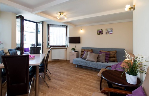 Amplio apartamento de 3 dormitorios y 2 plantas en planta superior. Hasta 8 personas. Con aire acondicionado, wifi, balcón con muebles de jardín, 1 baño y un aseo extra y cocina totalmente equipada. El apartamento está situado a poca distancia a pie del casco antiguo de Cracovia.