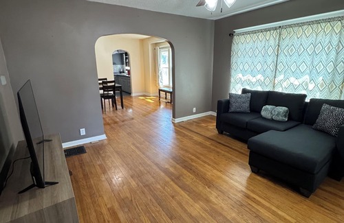 Al instalarte en este alojamiento de 3 dormitorios y 1 baño, encontrarás una zona para barbacoas y aire acondicionado. Disfruta del wifi gratis y de la televisión. El cuarto de baño incluye toallas, papel higiénico y jabón. Prepara una comida casera en la cocina, equipada con horno, placa de cocina y frigorífico, además de cafetera y tetera, microondas y utensilios de cocina. Y gracias a la lavadora y la secadora, podrás viajar con poco equipaje. Otras comodidades incluyen ropa de cama, calefacción y una mesa de comedor.