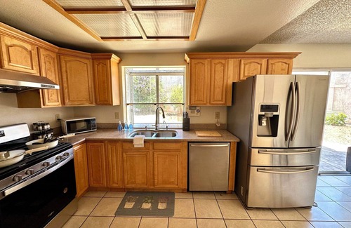 Aprovecha para preparar una comida casera: dispones de horno, placa de cocina, lavavajillas y microondas. Disfruta del wifi y de la televisión. El cuarto de baño incluye un secador de pelo, toallas y papel higiénico. Y gracias a la lavadora y la secadora, podrás viajar con poco equipaje. Otras comodidades de este alojamiento de 4 dormitorios y 2.5 baños incluyen ropa de cama, aire acondicionado y calefacción.