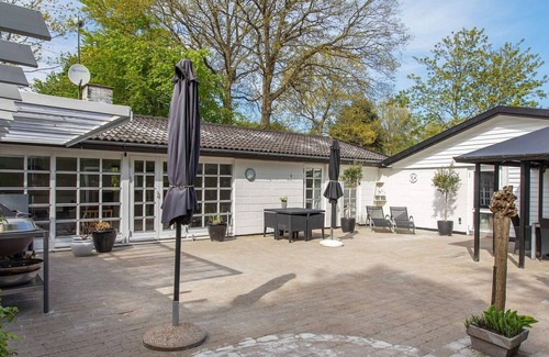 Distribución: Edificio anexo: (cama doble, cama doble plegable) cocina abierta(fogón(eléctrico), campana extractora, cafetera, microondas, lavavajillas, nevera con congelador ), salón-dormitorio(TV(canales de televisión alemanes, canales de TV daneses), radio, trona), dormitorio(cama doble, cama infantil), dormitorio(cama doble), cuarto de baño(secadora, bañera o ducha, lavabo, váter, lavadora), cuarto de baño(bañera o ducha, lavabo, váter), terraza, terraza(cubierta), barbacoa, mesa de ping-pong, dardos, bomba de calor aire-aire