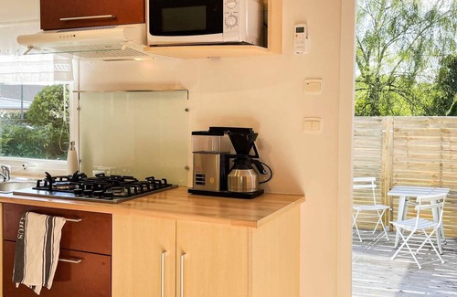 Distribución: cocina(fogón(2 placas de cocina), fogón(4 placas de cocina, gas), cafetera, horno, microondas, nevera, congelador(1-59L)), dormitorio(cama doble), dormitorio(2x cama individual), cuarto de baño(váter), cuarto de baño(lavabo, ducha), calefacción(radiador(es) eléctrico(s)), jardín, muebles de jardín, aparcamiento