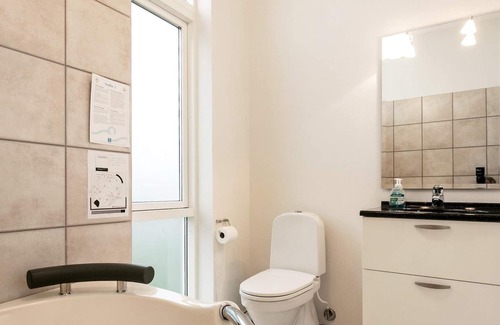 Layout: cocina abierta(fogón(eléctrico), campana extractora, cafetera, microondas, lavavajillas, nevera con congelador ), salón-dormitorio(TV(canales de televisión alemanes, canales de TV daneses), reproductor de DVD, radio), dormitorio(cama doble), dormitorio(cama doble), dormitorio(cama doble), dormitorio(cama doble plegable), cuarto de baño(calefacción de suelo)(secadora, bañera o ducha, lavabo, váter, lavadora), cuarto de baño(calefacción de suelo)(bañera o ducha, lavabo, váter), terraza, barbacoa, bomba de calor aire-aire