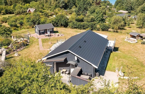 Distribución: Edificio anexo: (2x cama individual plegable, cama doble) cocina(fogón(2 placas de cocina), cafetera, lavavajillas, congelador(1-59L), nevera con congelador ), salón-dormitorio(TV(canales de TV daneses, canales de TV suecos)), dormitorio(cama doble plegable), dormitorio(cama doble), dormitorio(secadora, lavadora), dormitorio(cama doble plegable), cuarto de baño(lavabo, ducha, váter), cuarto de baño(lavabo, váter), muebles de jardín, tumbonas, bomba de calor aire-aire