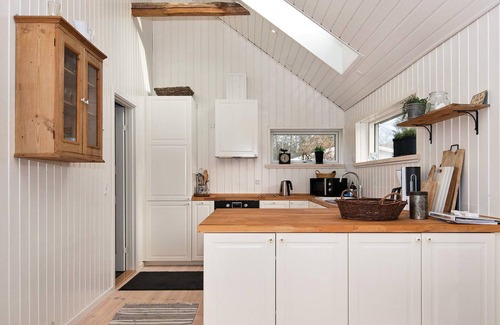 Esta casa de campo de 2019 con bañera de hidromasaje se encuentra en una zona tranquila de casas de campo en una parcela existente con setos altos y árboles. La cabaña está construida con materiales de primera calidad y está decorada con gusto y personalmente. En toda la casa hay pisos de madera y paredes blancas, lo que hace que la casa sea siempre luminosa y acogedora. Hay dos baños, uno con bañera de hidromasaje que se puede utilizar después de una larga caminata en la acogedora y pintoresca zona junto al lago Bølling. La cabaña tiene tres buenos dormitorios y un altillo con dos camas supletorias. Alrededor de la casa hay una gran terraza de madera y una terraza cubierta más pequeña para que pueda hacer una barbacoa y disfrutar de las frescas noches de verano. Hay un columpio. La zona tiene buenas oportunidades de pesca, y cerca de la casa de campo se encuentra el club de golf Tollundgård y el lago de pesca Put and Take. No se alquila a grupos de jóvenes.