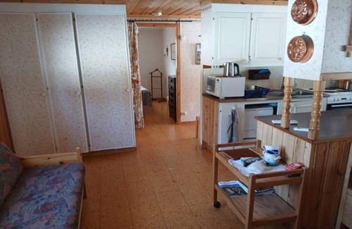 Distribución: salón(cama individual plegable), cocina(fogón(eléctrico), cafetera, horno, lavavajillas, nevera con congelador ), salón-dormitorio(cama doble plegable), dormitorio(cama doble), cuarto de baño(lavabo, ducha, váter, lavadora, armario de secado), balcón, calefacción(radiador(es) eléctrico(s)), muebles de jardín