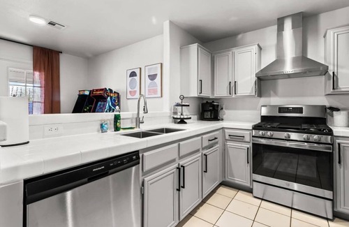 Esta casa de vacaciones tan agradable en Norte de Las Vegas lo pone todo a tu alcance. El alojamiento dispone de un aparcamiento cubierto en las instalaciones. Además, estarás a 12min en coche de Fremont Street Experience y a 12min en coche de Fremont Street.