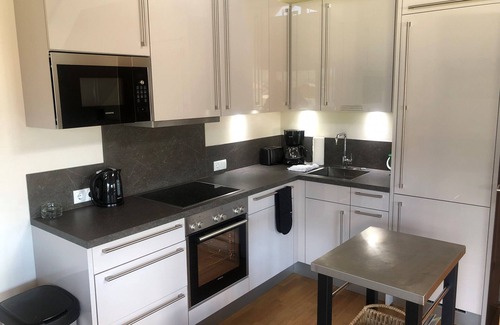 Prepara una comida casera en la cocina, equipada con horno, placa de cocina y frigorífico, además de cafetera y tetera, microondas y utensilios de cocina. El cuarto de baño incluye un secador de pelo y toallas. No necesitarás llevarte mucho equipaje, porque hay acceso a una lavandería. Otras comodidades incluyen un sofá cama, ropa de cama, una tabla de planchar y servicio de limpieza limitado.
