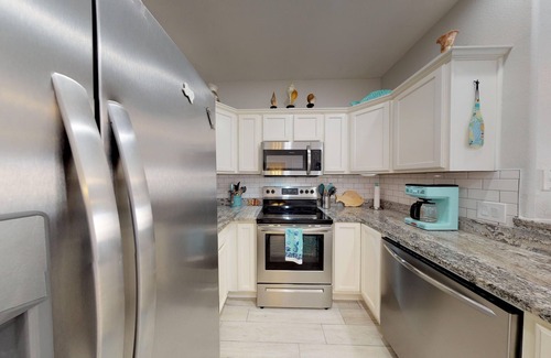 Muy bien decorado con 2 dormitorios y 2 baños, situado en la calle 9 Town Homes Barrio. El acceso a la piscina de la comunidad, a pie de la ciudad y restaurantes. Gran cubierta con muebles nuevos para la relajación al aire libre. Tiene Wi-Fi. Este gran condominio cuenta con todas las comodidades del hogar con (BR1-Rey, Reina BR2- 1). NO APARCAMIENTO EN BARCO