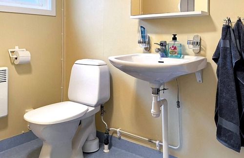 Layout: Annex: (3x single bed, washbasin, toilet) Kitchen(stove(induction), coffee machine, microwave, dishwasher, fridge-freezer, water from well), Living/bed room(TV(swedish TV channels), fireplace), bedroom(double bed), bedroom(double bed, TV(swedish TV channels)), bathroom(washbasin, toilet), bathroom(shower), balcony, heating(electric), garden, garden furniture, parking, air to air heatpump