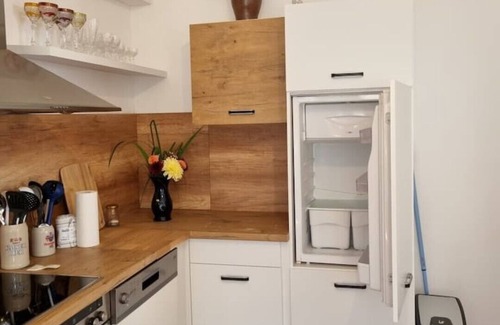 Este alojamiento de 1 dormitorio y 1 baño cuenta con una sala de estar, un sofá cama y una zona para barbacoas. El cuarto de baño incluye toallas, papel higiénico y jabón. La cocina está equipada con horno, placa de cocina y frigorífico, además de cafetera y tetera, hervidor eléctrico y utensilios de cocina.