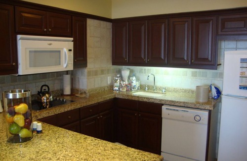 Cocina completa (estufa, sin horno), refrigerador, microondas y todos los utensilios de cocina, comedor espacioso / sala de estar con un cómodo sofá cama.