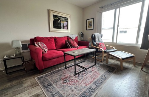 Pequeño 1 dormitorio (estudio grande con alcoba dormitorio). Perfecto para una escapada de fin de semana para una pareja. 1/2 cuadra de una de las mejores playas del sur de California. NOTA: La foto principal es desde el pasillo. Dentro del condominio hay una vista a la montaña.