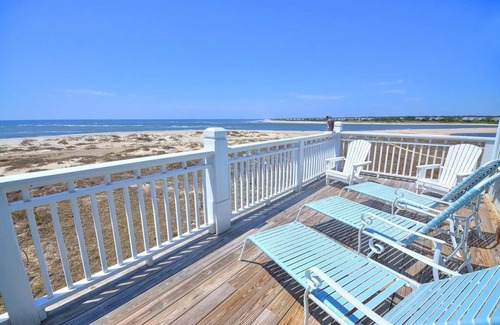 Tar Heel Haven-6 dormitorios 5 1/2 baños hermosa casa frente al mar. Esta casa es perfecta para una escapada familiar o una reunión de amigos. Con grandes terrazas en la parte trasera de la casa, arriba y abajo, seguramente se verá mimado por las vistas y los sonidos del océano. Lavadora y secadora, internet inalámbrico, servicio telefónico, lavaplatos y chimenea a gas harán de su estadía un sueño en Oak Island. Un montón de juegos de mesa, televisión de alta definición con sonido envolvente. Portería de baloncesto para sus fanáticos del deporte, hamaca y un televisor de 50 "en la sala de bonificación, televisión en todas las habitaciones.