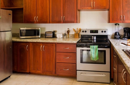 Esta villa está ubicada en la comunidad cerrada de Vista Ocotal que tiene un guardia de seguridad 24/7. ¡Está a un corto paseo por un pequeño sendero hasta Playa Ocotal y el restaurante Father Rooster que está justo en la playa! Te encantará este acogedor condominio de playa de 2 dormitorios y 1 baño con las características mejoradas, que incluyen encimeras de granito, electrodomésticos de acero inoxidable, pisos cerámicos, camas cómodas, ventiladores de techo, aire acondicionado y lavadora / secadora en la unidad. La ventana de la cocina da al patio cubierto de hierba y a los frondosos árboles. ¡Verás y escucharás monos aulladores en los árboles justo afuera de la villa! Cada habitación tiene una cómoda cama queen y un amplio armario para ropa y otros artículos. El salón también tiene un sofá cama. Se proporcionan todas las sábanas, toallas y artículos de cocina, ¡así que siéntase como en casa!