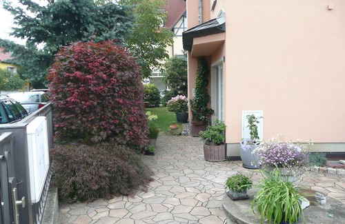 El moderno apartamento equipado tiene un diseño exitoso. Se encuentra en el piso superior, en una casa de 2 familias. La propiedad cuenta con una plaza de aparcamiento para nuestros huéspedes. Todo alrededor es un jardín amorosamente diseñado, donde podrá relajarse a la sombra bajo un nogal del paseo de la ciudad. Las tiendas están en el área inmediata, a unos 5 minutos. Instalaciones gastronómicas se puede llegar a pie en pocos minutos. Los eventos recreativos son regularmente los fines de semana (viernes a domingo) en el lugar del concierto, en medio del bosque. También hay catering con comidas a la parrilla, bebidas u. a. m. ofrecido.