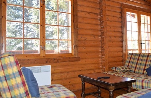 Chalet de piedra y troncos de 4 lados que consta de comedor/sala de estar con chimenea, cocina independiente con cocina de gas de inducción de 4 fuegos y horno, frigorífico/congelador, microondas, lavavajillas, televisión.