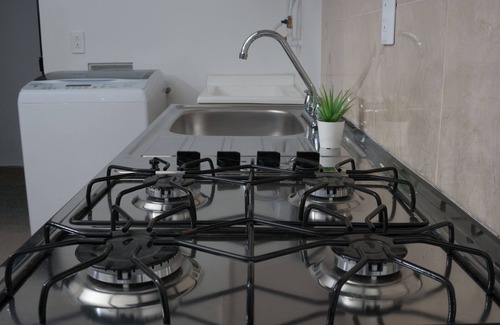 Acogedor estudio ubicado al norte de Armenia, en una urbanización cerrada y segura (Oro negro Ocaso). Fácil acceso en transporte público (autobús o taxi). El estudio está amueblado con una cama Queen, sofá, cocina, nevera y lavadora; gran supermercado cerca; A 50 metros hay una estación de servicio. El museo más importante de la ciudad está a 10 minutos del apartamento (caminando) Acogedor estudio en el Norte de Armenia. Parque residencial Oro negro Ocaso.