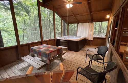 Acogedora cabaña romántica con bañera de hidromasaje en un porche cerca del parque Fayetteville WV + | Cabina en Victor