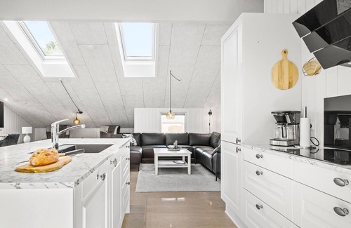 Su elegante casa de vacaciones, con espacio para dos familias, está situada no lejos de las orillas del Pequeño Belt en Hejlsminde y combina un entorno tranquilo con una amplia oferta de actividades de ocio. Aquí encontrará las condiciones ideales para unas relajantes vacaciones en Dinamarca. En el interior, encontrará un salón abierto y luminoso con una bonita cocina americana, una elegante mesa de comedor y cómodos asientos. El diseño bien pensado crea un ambiente agradable y acogedor. Gracias al gran ventanal frontal, podrá disfrutar de las vistas al jardín mientras se relaja en el sofá o disfruta de una comida en compañía.
