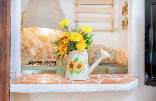 Enclavada en el idílico paisaje cerca de las playas de Cannigione, esta acogedora casa de vacaciones está situada en una hectárea de terreno privado y garantiza una experiencia relajante en la máxima privacidad. La encantadora casa de vacaciones consta de un salón/comedor, una cocina bien equipada, 2 dormitorios (uno con 2 camas individuales) y un cuarto de baño, por lo que tiene capacidad para 4 personas. Los servicios adicionales incluyen Wi-Fi, aire acondicionado (frío y calor), lavadora y televisión. En el exterior encontrará una amplia terraza con comedor techado y barbacoa, todo ello rodeado de vegetación autóctona y cantos rodados naturales. Desde las terrazas se puede disfrutar de unas magníficas vistas de las montañas y los verdes valles de los alrededores. Debido a la ubicación rural pero bien comunicada de la propiedad, se puede llegar a las tiendas y a las hermosas playas de Cannigione en pocos minutos en coche: los supermercados y restaurantes están a unos 2,4 km o 5 minutos en coche y varias playas de arena como Spiaggia di Cannigione, Spiaggia Tanca Manna y Spiaggia di Laconia también están a unos 3 km o 5 minutos en coche de la propiedad. La playa de Porto Cervo y algunas de las playas más bonitas de la Costa Esmeralda también están a unos 15 minutos en coche.