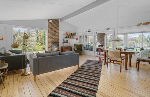 Después de una tranquila noche de sueño en su casa de vacaciones en la costa oeste de Zelanda, le espera un día lleno de acontecimientos. Comience la mañana con un acogedor desayuno en la mesa de comedor del salón antes de retirarse a la zona de sofás para jugar a juegos de mesa o leer. Aquí también podrás disfrutar de las vistas al extenso jardín y encender la chimenea por la noche para crear un ambiente acogedor. Cuando hace buen tiempo, también se puede cenar al aire libre bajo la sombrilla. El jardín también es ideal para un pequeño torneo de fútbol u otros divertidos juegos de pelota.