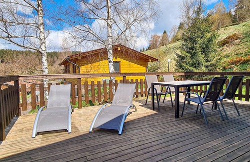 Esta acogedora casa de vacaciones de madera en la ciudad balneario de Masserberg le da la bienvenida en un lugar idílico.