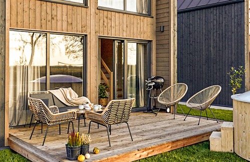 Disfrute del sol en la terraza en los hermosos días de verano. La gran propiedad ofrece mucho espacio para jugar y relajarse. Más tarde, reúna a toda la familia para degustar delicias a la barbacoa y termine el día con un relajante baño en la bañera de hidromasaje.