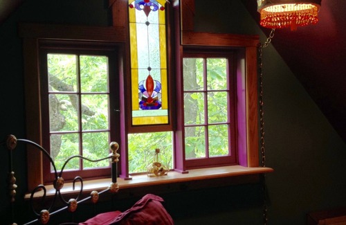 Nuestra cabaña (Cristal Azul Hideaway) es un poco adorable casa situada en el extremo posterior de nuestra propiedad detrás de la casa principal. Es sólo 1/2 cuadra del distrito histórico del centro y 1/2 cuadra de la histórica bucle. Si prefiere no ir caminando al centro, hay múltiples carro para cerca. Le encantará nuestra casa de muñecas romántica con techos altos, chimenea y jacuzzi, levantó las cortinas de encaje de color, así como muebles antiguos. Igualmente encantador es la acogedora, sensación ático-como del espacio de la habitación, encendiendo la chispa de alta romance y dulces recuerdos de los tiempos hace mucho tiempo. Gourmet desayuno continental y una botella de vino espumoso se incluyen con su estancia. También podrá disfrutar de la ubicación aislada y tranquila avistamientos ocasionales de ciervos y ardillas blancas desde su porche. Disfrutar de la serenata de los muchos pájaros cantores que viven en los árboles que rodean la casa. Además, durante las horas de la tarde, se puede deleitar en la pantalla mágica de las luciérnagas en su patio delantero. No quiero salir a cenar? Nuestra casa está equipada con una cocina totalmente funcional que incluye estufa, microondas, nevera, tostadora y cafetera. Nuestro lugar es ideal para parejas, pero los solteros también son bienvenidos. Contáctenos directamente (303-394-3928) si tiene preguntas.