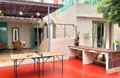 Ideally located in a peaceful neighborhood of Marrakech, this villa offers both privacy and convenience. Three bathrooms provide personal space for everyone, and the two suites are elegantly furnished for your comfort.