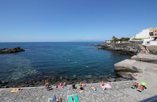 Vivienda vacacional con plaza de garaje en la plaza del pequeño pueblo costero de Alcalá que se encuentra a tan sólo 2 minutos caminando de la pequeña playa de arena. Decorado con muy buen gusto, ofrece todo lo que se puede desear para unas vacaciones confortables. Lo más destacado es por supuesto, la gran terraza privada en la azotea con una vista de ensueño al Océano Atlántico y la isla vecina de La Gomera, a la cual se accede a través de una escalera de caracol desde el salón. Dispone de una mesa con 4 sillas, un pedestal con dos sillas y mesa auxiliar y 2 tumbonas, que garantizan muchas horas de relax y esparcimiento. La vivienda dispone de Wi-Fi de alta velocidad, una sala de estar y un comedor con Smart TV, Netflix y un balcón, una cocina separada y totalmente equipada, un dormitorio principal con 2 camas individuales unidas, un segundo dormitorio para 2 personas y un baño con ducha. El garaje se ubica en el mismo edificio y la entrada es a través de un control remoto. Da a la tranquila plaza del pueblo, rodeada de laureles centenarios, bancos, un supermercado, una escuela de buceo y varios bares y restaurantes, donde degustar la gastronomía local. Los lunes, se celebra incluso un pequeño mercado local, donde agricultores locales ofrecen sus frutas y verduras frescas. A través de un bonito paseo marítimo se llega también en pocos minutos a otras 3 pequeñas playas de arena y piscinas naturales, con carriles para bicicletas, parques infantiles, etc. Alcalá sigue siendo uno de los pequeños pueblos costeros en el sur de la isla que aún preserva el ambiente local. Es una vivienda vacacional ideal para los amantes del sol y de la playa, así como para los amantes de la naturaleza que quieren escapar de los grandes centros turísticos masificados.