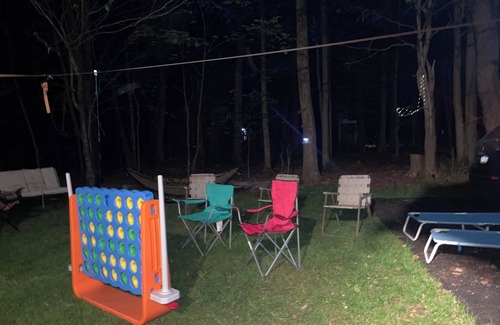 Este chalet de 4 dormitorios y 2 baños se encuentra en Tobyhanna y es una ubicación fantástica desde la que recorrer los alrededores. A los amantes de la naturaleza y el aire libre les encantará estar a 25min en coche de Lago Wallenpaupack y a 5min de Parque estatal de Tobyhanna. Puedes conducir 15min hasta Kalahari o 24min hasta Camelback Ski Area.
