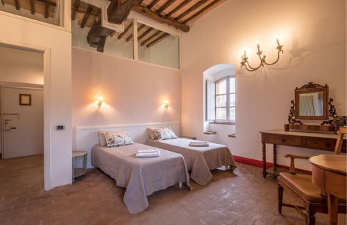 Este apartamento de vacaciones está situado en una torre histórica en Castello del Poggiarello, un hermoso y característico complejo con 7 apartamentos de vacaciones y piscina comunitaria, situado en el pueblo medieval de Stigliano, a unos 20 km de la hermosa ciudad de Siena y en una posición panorámica sobre las colinas. El complejo es el punto de partida ideal para explorar la Toscana, desde Florencia hasta la costa de la Maremma. Hay un jardín comunitario con mesas, sillas y una hermosa piscina soleada. En el pequeño pueblo de Stigliano hay un restaurante, mientras que en el cercano pueblo de Rosia (3 km) hay una farmacia, supermercado, banco y oficina de correos. El piso está en dos niveles (3ª y 4ª planta) conectados por una escalera de caracol.