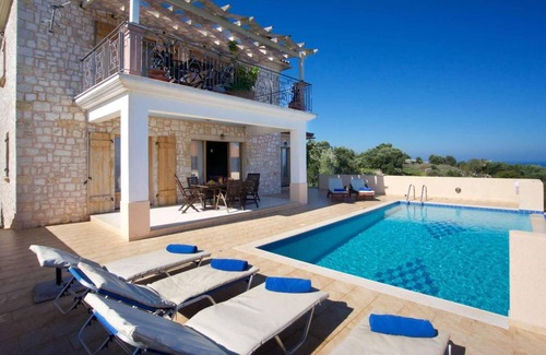 La Villa Evanthia se encuentra en la pintoresca localidad de Katsarata, cerca de Fiskardo, y ofrece unas vistas maravillosas al mar Jónico y a las islas cercanas. A solo tres kilómetros del bonito puerto de Fiskardo, con su variedad de pintorescos restaurantes, cafés y tiendas, el Evanthia, construido en piedra, es la base perfecta para unas vacaciones tranquilas al alcance de esta joya de la jónica. Las terrazas, los balcones y el área de la piscina aprovechan al máximo las amplias vistas que se extienden hasta el mar, ideales para la vida al aire libre y para comer al aire libre. Si puede alejarse de las vistas, el interior de la villa consta de dos habitaciones con dos camas individuales y una doble, todas con aire acondicionado. El amplio salón de planta abierta y la cocina totalmente equipada tienen puertas de patio que lo atraen a la terraza de la piscina. La posición de Evanthia no deja nada que desear. Además de estar a menos de 10 minutos en coche de Fiskardo, hay tres o cuatro playas a 5-10 minutos en automóvil y se puede llegar al pueblo cercano de Magano en 15-20 minutos a pie.